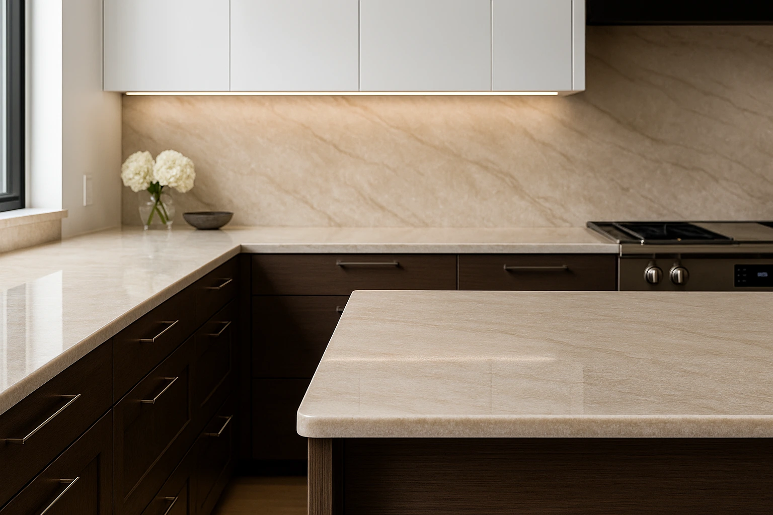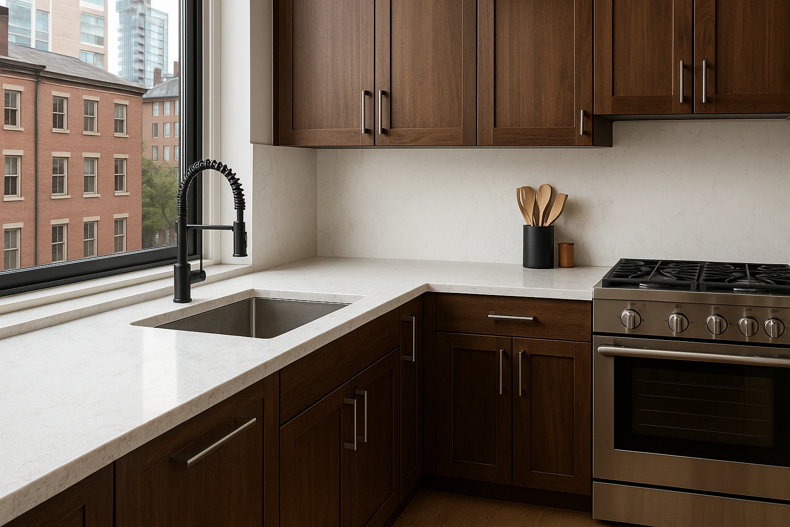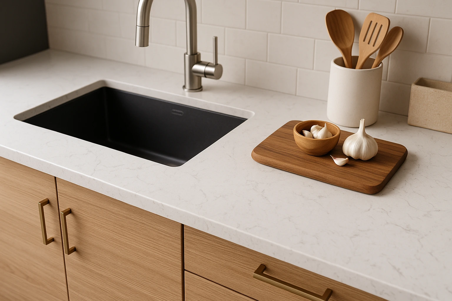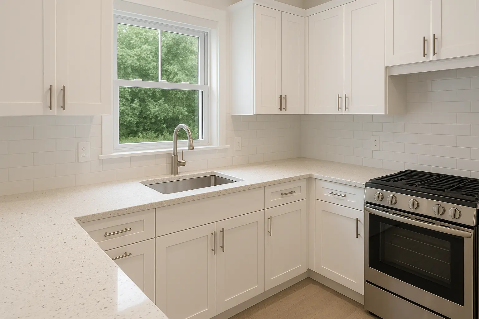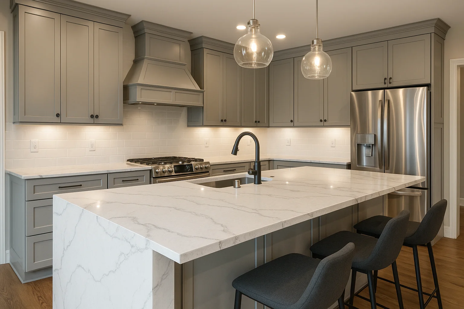 Choose a plain white quartz for just $60/sf – all inclusive.